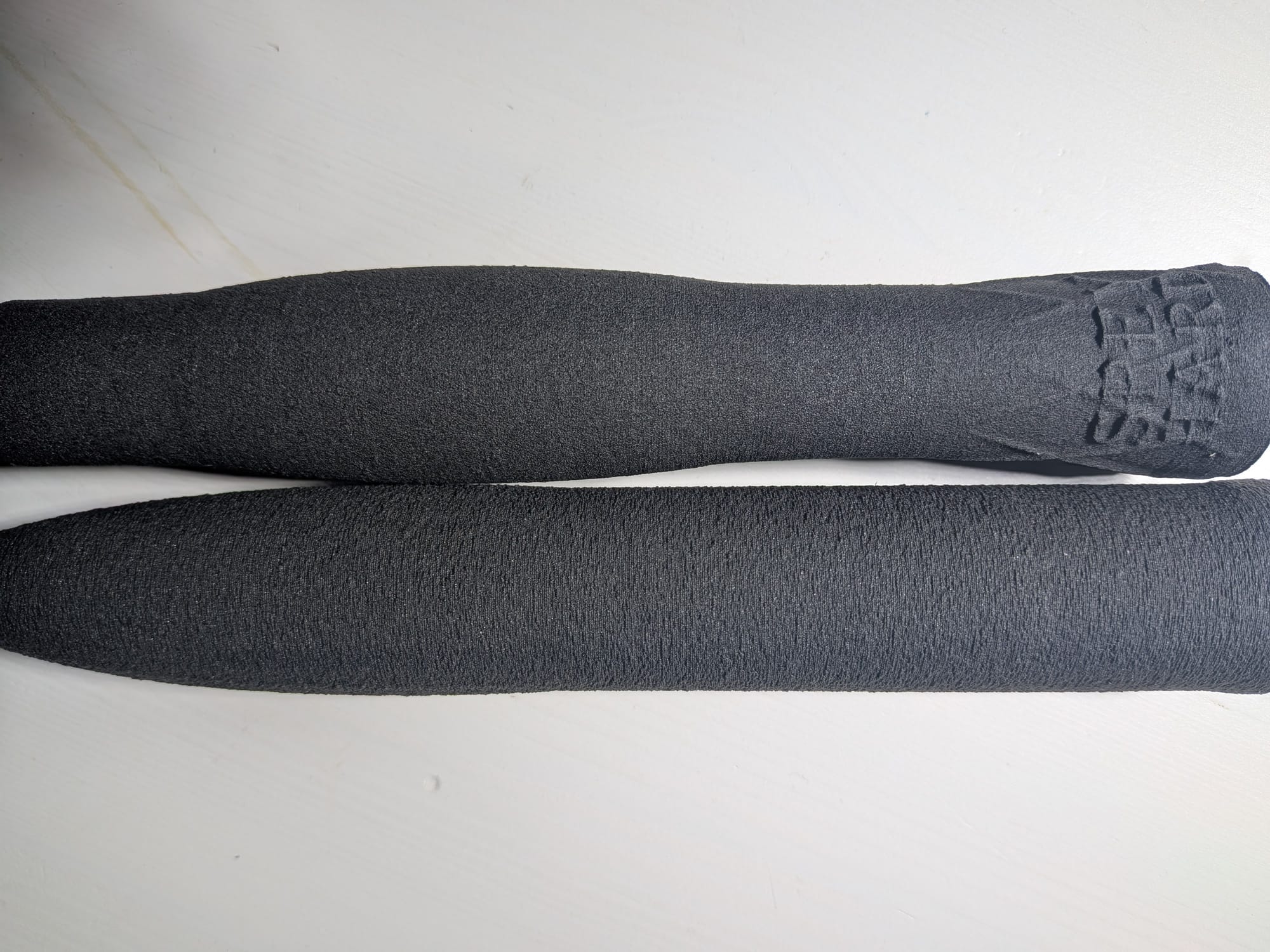 Sitten vaan ankaraa tulostusta. Sidewinderillä ei mitään nopeusennätyksiä tehdä, joten kahvan tulostus vie asetuksista riippuen noin 3-5 tuntia. Buttin tulostaa noin puolessa tunnissa. Jos tuntuu, ettei saa millään siistiä jälkeä aikaiseksi, niin laittaa slicerista suosiolla fuzzy skin -asetuksen päälle ja tekee rypyläisen koko ulkopinnasta. Sitten voi väittää että tämmöisen tästä halusinkin. Karkean. Pysyy hyvin hyppysissä. Tulostettu foam-pinta on kyllä muutenkin pitävä, mutta eihän sitä kaikille tarvitse kertoa.